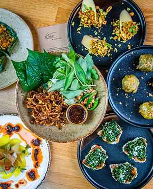 Founder Andy Goodwin darts out with each dish, explaining in passionate but muffled (due to the mask) whispers about each one’s roots and inspiration. Starting Alter as a way to shake up the common perceptions of vegan food and draw from the street food of Asia, he has roundly succeeded. My plus-one, a first-wave vegan, admires how far the diet has leaped. This stylish venue and its outstanding dishes are a far cry from the lentil-heavy grey goop of the early years, yet sidesteps the imitation junk food so in vogue now.