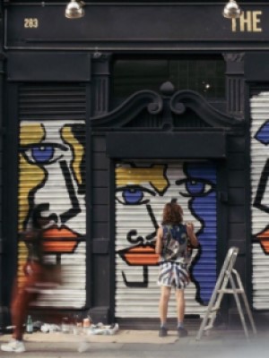 Those who spend time in east London will be familiar with her signature faces, images that often look like a cross between Stik and Matisse.