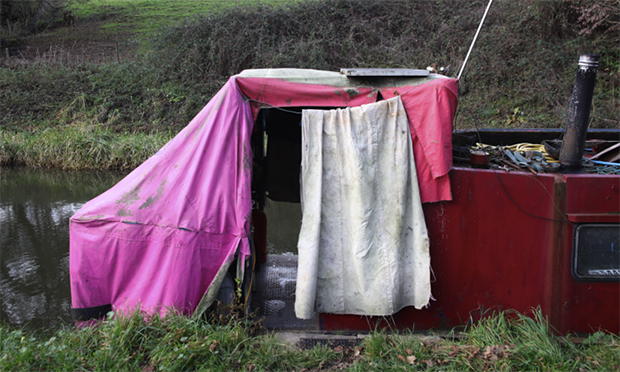 Space says the photographs “bring canal and DIY living into the gallery and speak to the tension between the basic necessity of staying dry and warm and the human desire to decorate and domesticate nature”.