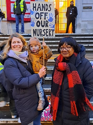 The protest’s headline speaker was Diane Abbott, MP for Hackney North and Stoke Newington, who said the centres are “part of making Hackney a stronger and happier community”.