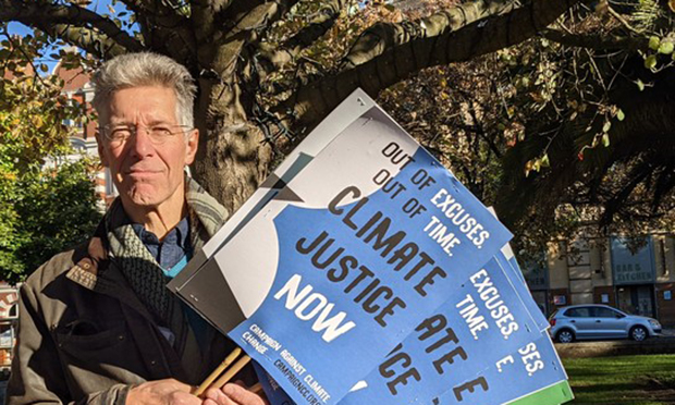The protest came ahead of a march last Saturday involving Hackney Climate Coalition from Shoreditch to the Bank of England, where they met up with others from the COP26 coalition of environmental campaigners for a rally at Trafalgar Square.