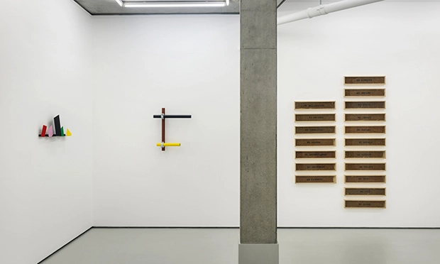 Gathering together pieces from the past 30 years, this show offers a broad sweep of the artist’s oeuvre, from his early text-based embroidery and screenprints to more recent work that uses found industrial materials such as scaffolding pipes, metal clamps and snooker balls.