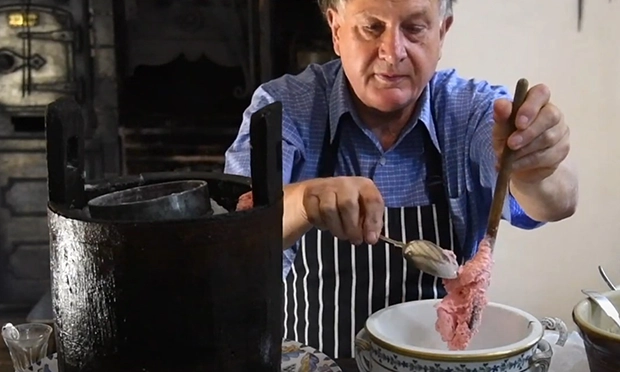 So the court kitchen staff must have been rushed off their feet keeping up with the supply of ice cream. They used a simple technology which has only recently disappeared. We don’t know if it was a crazed boffin in a heatwave in 17th-century Florence, or a cunning Neapolitan entrepreneur, who made the technical breakthrough that changed the shape of puddings forever. Crushed ice mixed with salt creates a much lower temperature than ice on its own, so instead of just cooling a liquid or cream, a pail of ice and salt could freeze the contents of a tub in record time, as Robin Weir and Ivan Day have shown so vividly.