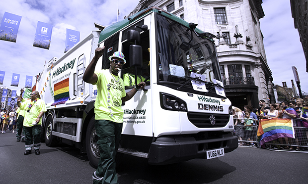 Hackney took its biggest ever crowd to Pride last Saturday, along with a bin lorry daubed with the words ‘Don’t trash love’.