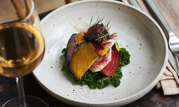 Unmissable is the beetroot three-ways. Everyone loves a threesome (of vegetables, you dirty thing) and this roasted, fermented, dehydrated and god knows what else – stuffed? Caressed? Loved? – proves confidently that you don’t need meat to craft something truly gratifying.