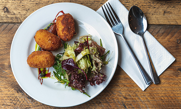 The starters twinkle like a set of rainbow gemstones. As advised we bite into the melted hearts of the Camembert croquettes, oozing out cheesy glory with a red wine and cranberry sauce – what a pairing. Fish cakes crunch and succumb, with an addictive Marseille aioli. The gravlax is a little dull in flavour, although the colour is a beautiful phosphorescent pink. The one dish that I wish could multiply is the pork and pistachio terrine, with a mango sauce and cornichons. Firm, fastidious and fabulous.