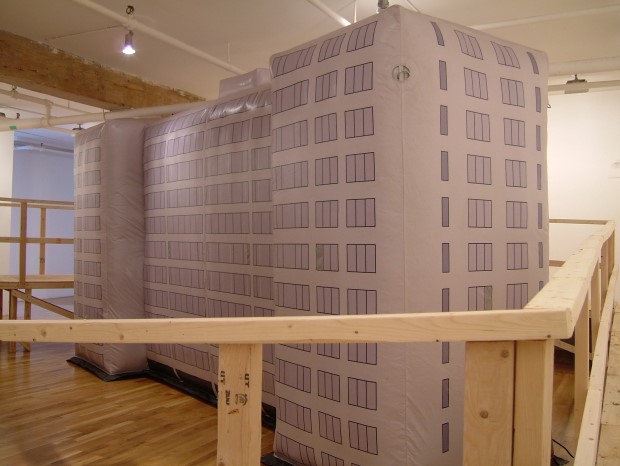 An inflatable tower block that rhythmically rises and falls opens Rakowitz’s show at the Whitechapel.