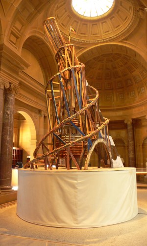 Opposite stands a model of Russian architect Vladimir Tatlin’s unrealised utopian tower – intended to be a grand, 400-metre tall symbol of communism’s success.