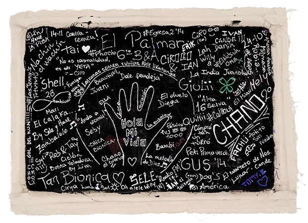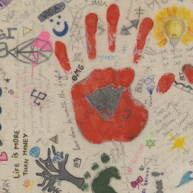 Band names, logos and worries about exams are scribbled on these canvasses.