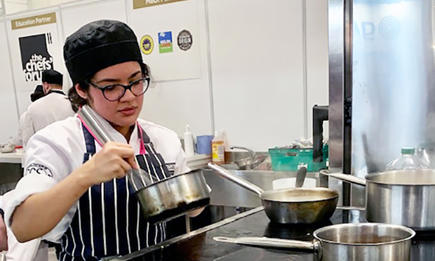 Maria Carbone, Sam Paoli and Patrick Paulo Dela Cruz, who study professional cookery at New City College in Hoxton, competed in front of a live audience at the ExCel Centre.