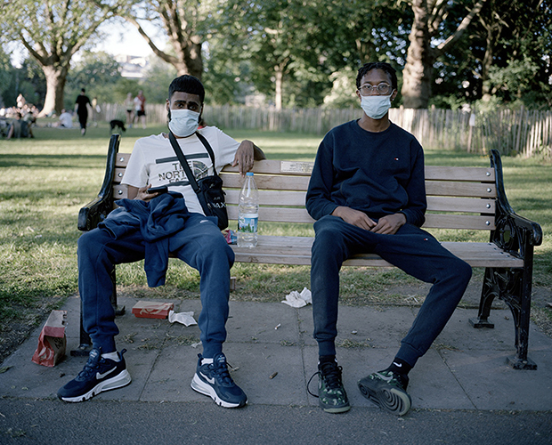 Autograph’s final selection also includes Robert Huggins’ picture of an Orthodox Jewish family on a Sunday walk at the East reservoir, Tommy Sussex’s shot of young men enjoying the sunshine after the first lockdown, and Manal Massalha’s photograph of two women called Convivial Hackney.