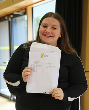 Head girl Chloe Chilvers let out a few tears of joy after getting her maths result.