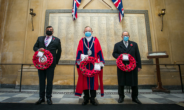Local politicians came together for a small, socially distanced and moving outdoor service around the war memorial in the churchyard gardens of St John-at-Hackney yesterday to mark Remembrance Sunday.