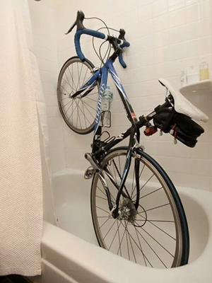 Pictures submitted include someone who sleeps in a bed next to their bike, a bike stored close to an oven, and bikes hanging over a balcony in a housing estate.