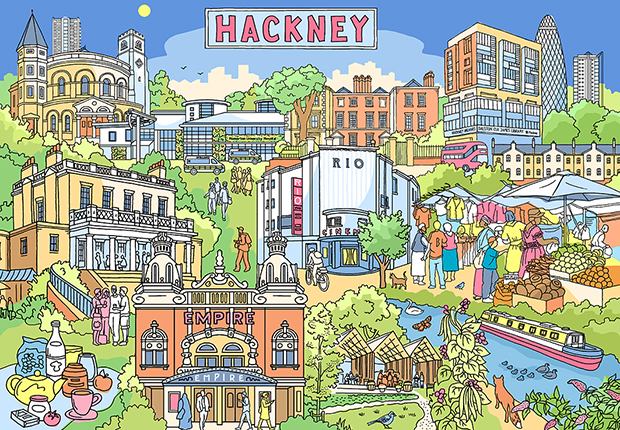“Jane’s style instantly communicates the topical landmarks of Hackney in a fresh, vibrant way. Her contemporary pictures of Hackney have the feel-good factor that everyone needs right now. They are bold and direct impressions of instantly recognizable places, that we have all visited or passed through at some point.