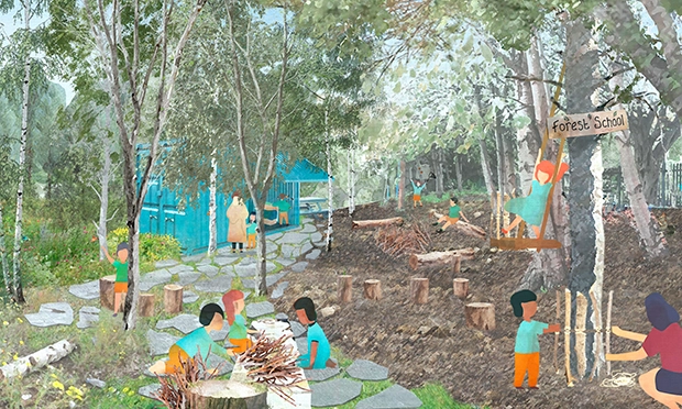 A forest school where local children would learn about the natural environment – the importance of beetles and spiders, bees, butterflies, mud and worms – safely.