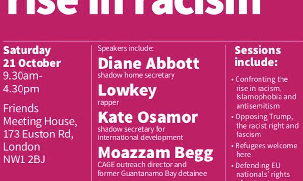 Stand Up to Racism’s national conference at Friends Meeting House in Euston, London, this Saturday (21 October) advertised Diane Abbott, a Hackney MP and Shadow Home Secretary, as its star speaker.