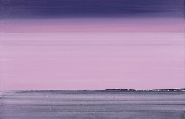 The sites depicted in the canvasses range from the artist’s native Scotland to the English coast and urban East London, all cast as vast empty spaces of rich colour.