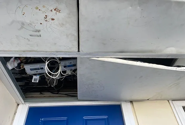 At Pitcairn House, the Citizen also saw evidence of broken fire alarms, damaged windows and window locks, broken extractor fans and intercoms, cracked or missing ceiling panels with exposed wiring, and heard a persistent humming noise in some areas of the building.