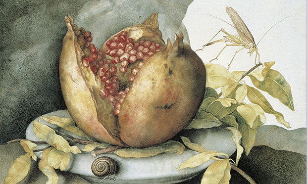 The pomegranate hardly seems a suitable snack for a small child who might choke on the pips, or slosh the juice all over its diaphanous garment, but the fruit often appears in art as a symbol of fruitfulness and fecundity, or representing the millions of souls within the Christian church, with their saviour, the infant Christ, clutching a ripe fruit.