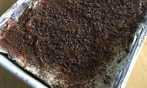 - Grate some dark chocolate or sprinkle some cocoa over the creamy layer. Then repeat the layers (I had four in total).
