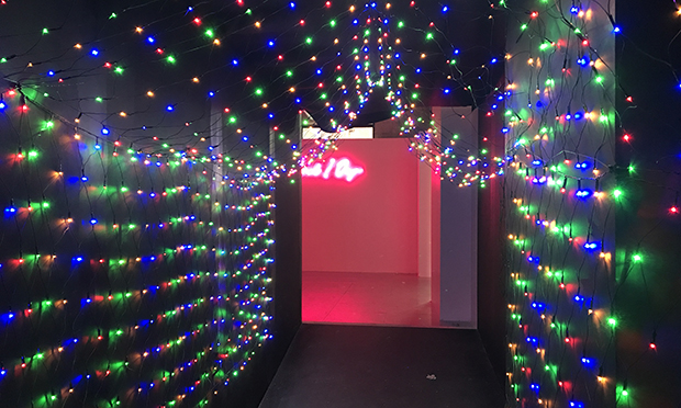 When I arrived, visitors were crawling, phones in hand, through a mirrored tunnel in order to enter the first space.