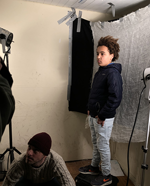 He has to stand extremely still whilst the photographers, Brian and Guy, move around him in a flurry.