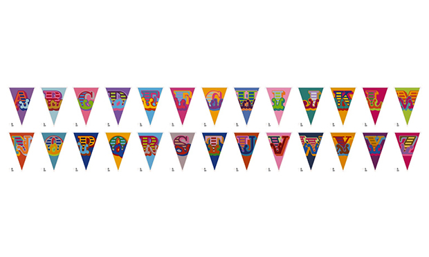 It is designed to evoke word games, which fits with the playful, carnival atmosphere Eine is hoping to create at the gallery to match his trademark circus-style font – he’s even arranged for the space to be decorated with bunting.