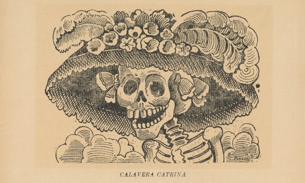 Guacamole has been around for decades, long before ‘smashed avocados’ insinuated themselves everywhere, often inappropriately. When Mexican ingredients were impossible to find, and dried chillies had to be smuggled in from Casa Moneo in New York in the suitcase of an eminent librarian, it was a relief to be able to make guacamole from more easily obtained ingredients – avocados, fresh chillies, garlic, a little chopped onion, and above all lots of fresh coriander leaves. At the opening of ‘The Day of the Dead’ exhibition at the British Museum in 1991, with margaritas flowing like water from a benign modern machine that effortlessly mixed the ice and lime juice with tequila, we watched a friendly young woman using a stone age mocajete to make a memorable guacamole by grinding a big handful of coriander for each avocado along with some salt into a surprisingly small amount of deep green paste, to which were then added the other ingredients, pounded into a rough lumpy mixture that no modern kitchen equipment could ever achieve. No point in being pedantic with the recipe, as the ingredients can vary, so long as the avocadoes are ripe and tasty. Catrina, with her grinning death’s head in a bourgeois bonnet, immortalised by Posada, and later Diego Rivera, seems to sum up this fusion of ancient and modern Mexico.