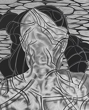 Bodies and their stories are the main focus of the drawings. Great care is devoted to evoking the texture of skin, hair, and musculature as the forms depicted intertwine and interact.