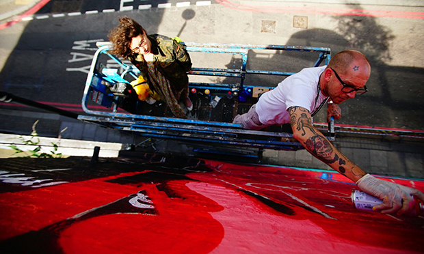 Ben Eine, fresh from a day of painting and spraying, said he was proud to be involved in such an “important and historic initiative”, adding: “Our hope for this mural, which we’re painting in response to the Grenfell fire, is that it will help keep this discussion alive and bring the victims and survivors out of the shadows so they can receive justice.”