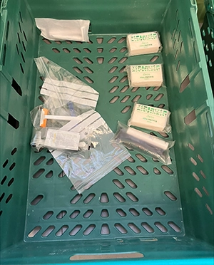 The constant stream of people arriving at the church keeps the volunteers on their feet for the whole session. By the end, the huge supply of boxes is very depleted.
