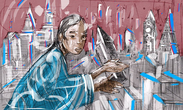Campbell, who sells prints of his artworks at a market stall in Brick Lane, said the mural was his take on the changing cityscape of London and upsides and downsides of regeneration.